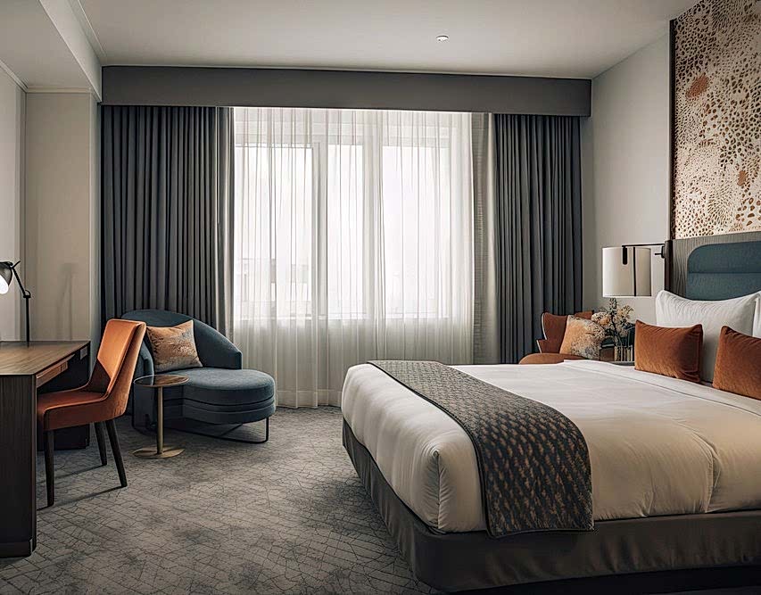 Otel perdeleri, misafirlerin konforunu ve mahremiyetini ön planda tutarak, ışık geçirmez ve ses yalıtımı sağlayan özelliklere sahip olmalıdır. Aynı zamanda dayanıklı, kolay temizlenebilir kumaşlardan üretilmeli ve otel odasının genel dekorasyonuyla uyumlu olmalıdır. Enerji verimliliği sağlamak amacıyla termal yalıtım özellikleri barındıran perdeler, hem işlevsellik hem de estetik açıdan yüksek standartları karşılamalıdır. Trend Perde bu konuda müşterilerine çok sayıda kumaş seçeneği sunmaktadır.